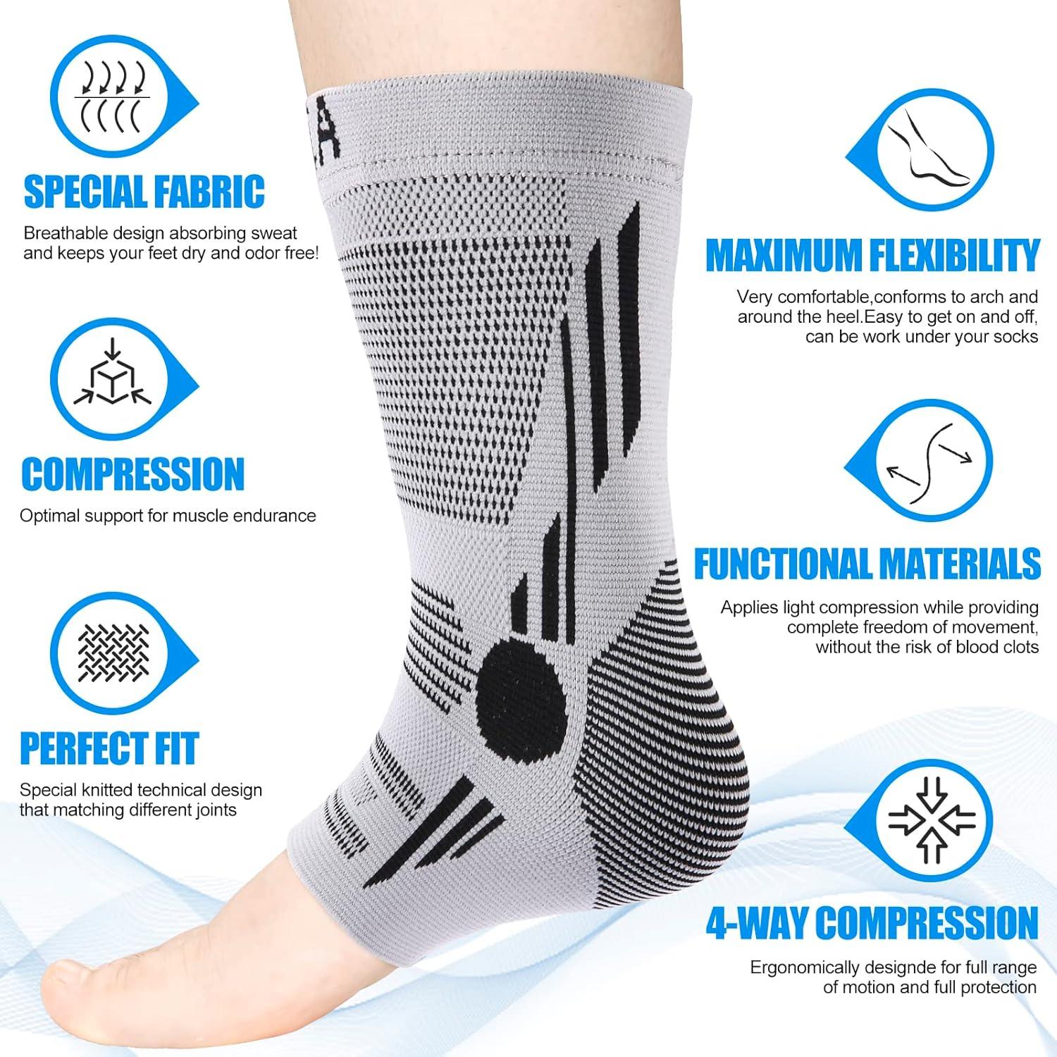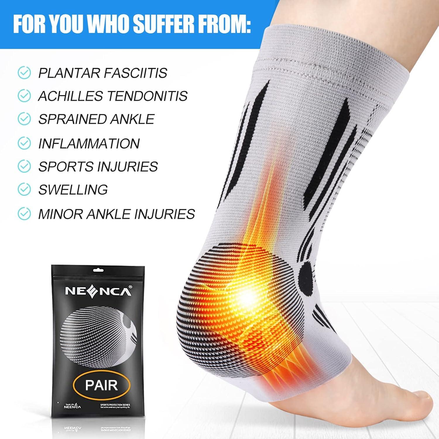 NEENCA Ankle Brace for Pain Relief, 2 Pack Compression Ankle Sleeves Set. Ankle Support Stabilizer for Achilles Tendonitis, Plantar Fasciitis, Joint Pain, Swelling, Arthritis, Sport – FSA/HSA Approved(Grey)