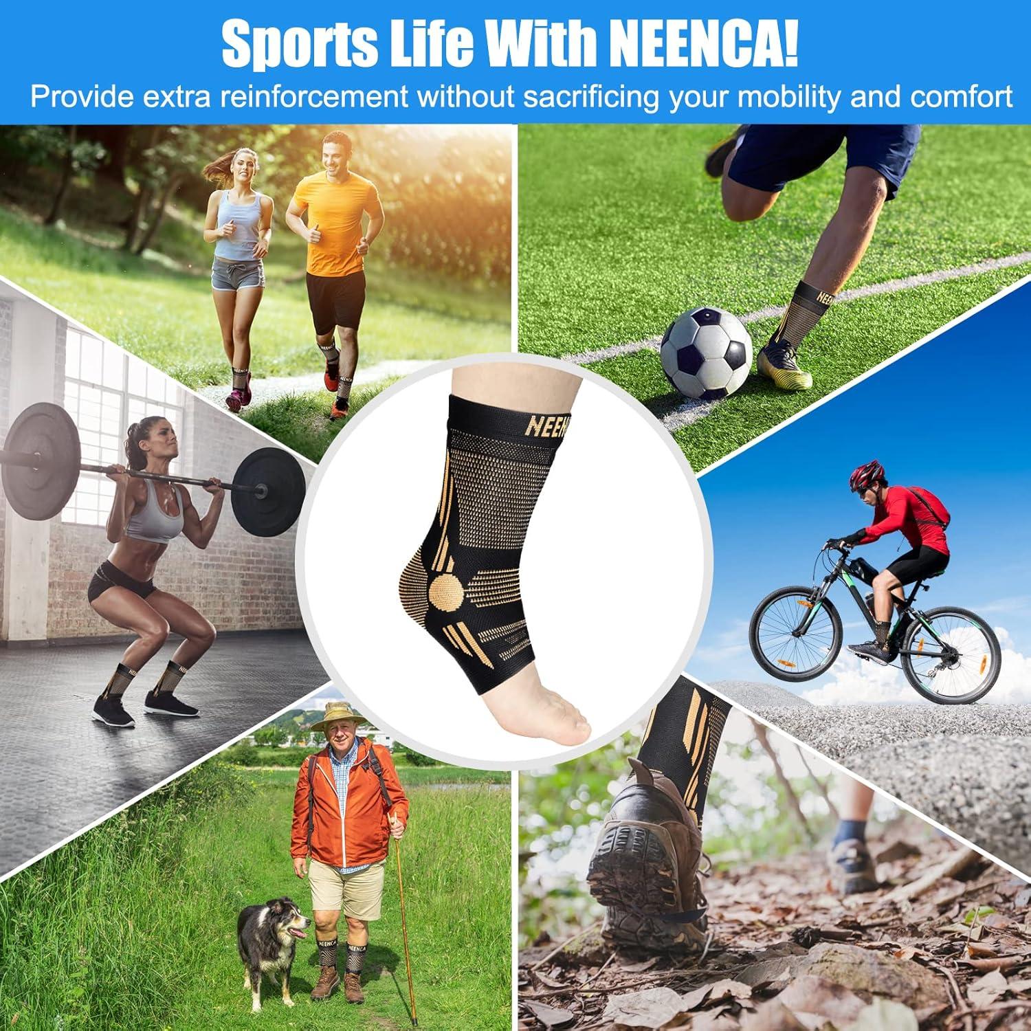 imageNEENCA Ankle Brace for Pain Relief 2 Pack Compression Ankle Sleeves Set Ankle Support Stabilizer for Achilles Tendonitis Plantar Fasciitis Joint Pain Swelling Arthritis Sport  FSAHSA ApprovedHigh Copper