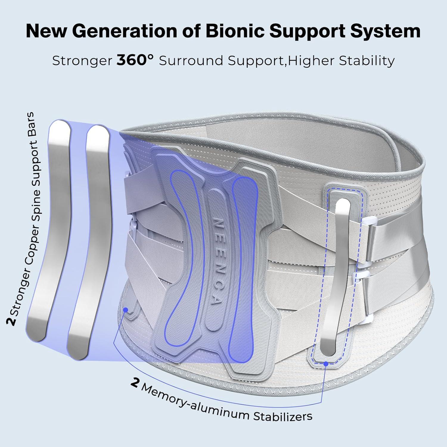 imageNEENCA Back Brace for Lower Back Pain Relief with Bionic Support System Lumbar Support Belt for WomenampampMen with Lumbar Pad Breathable 3D Knit Fabric for Herniated Disc Sciatica Scoliosis BlackGraySingle