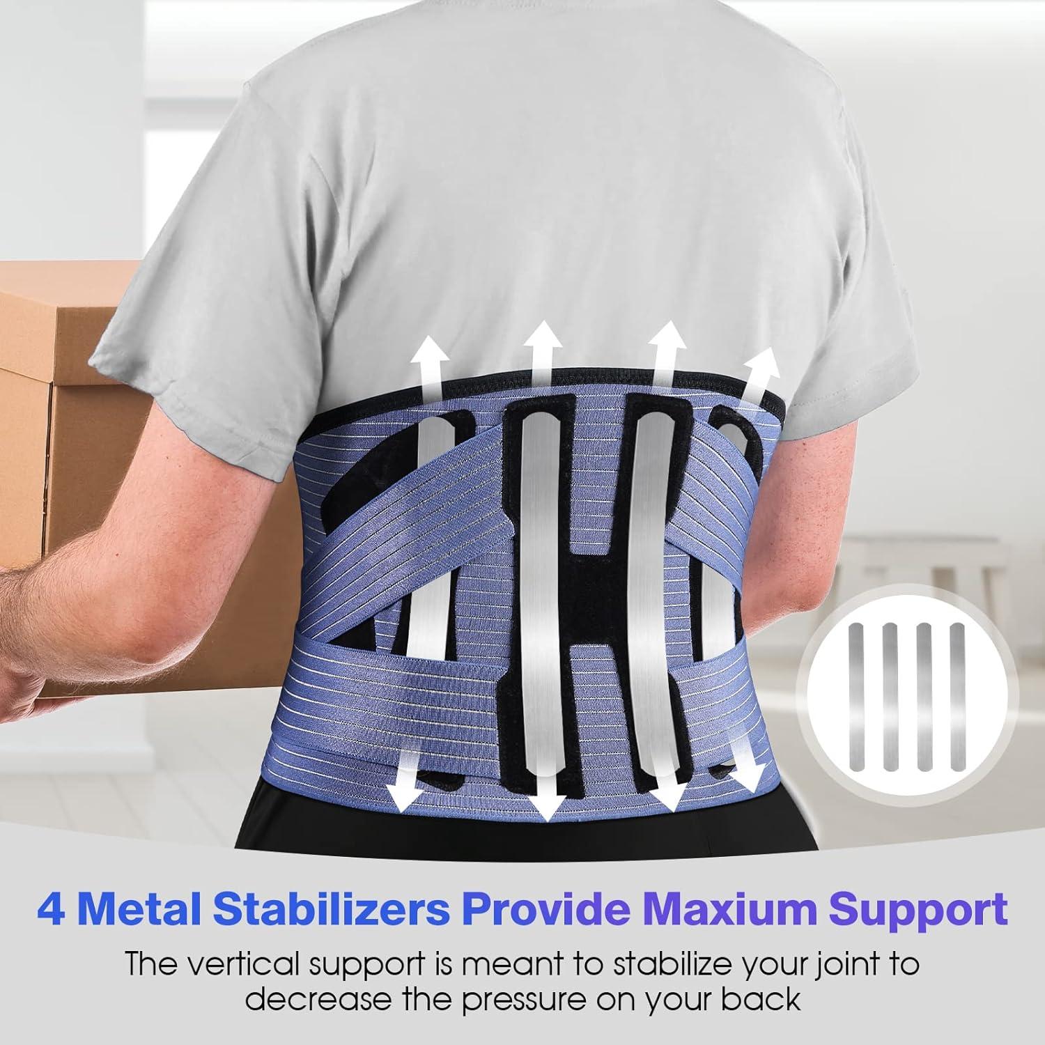 Medical Back Support— Overcome the defects of similar products, back brace with ultra soft medical bandage, no allergies and itchiness. Original large-area 3D hollow knitting technology and high-elastic fabric to avoid sliding and tumbling during use, It will stay position all day. Innovative design of 4 memory-metal spring stabilizers, make it more reliable than other lumbar supporter to provide extra reinforcement without sacrificing comfort, so you can wear it all day long!
