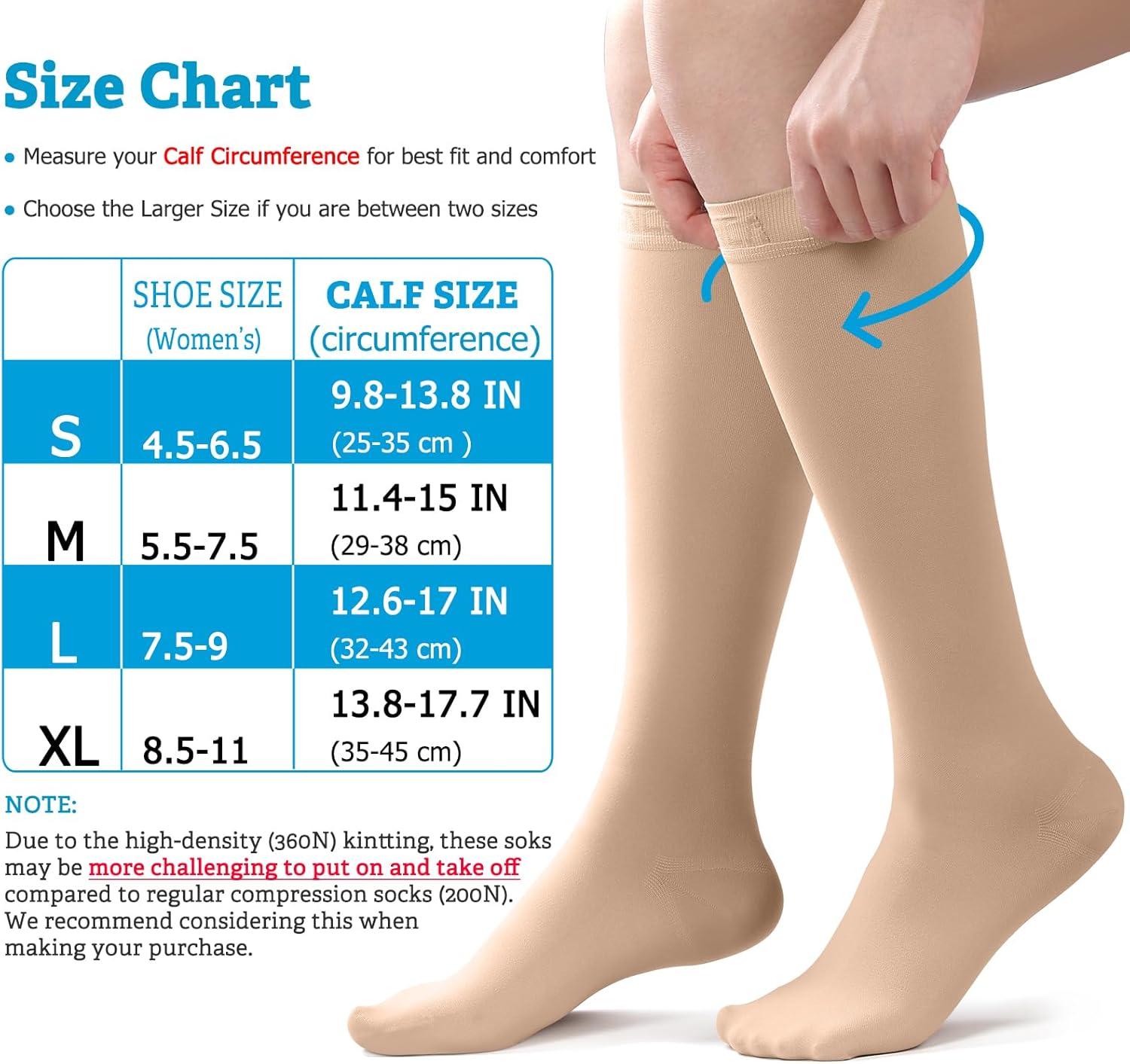 BETTER PERFORMANCE— Overcome the defects of similar products, medical compression socks with no allergies and itchiness. Ergonomic design: 360° perfectly fit your calf and foot curve, which will effectively disperses pressure, keeping your leg warm, lubricating your joints. Different from cheap products, the non-slip fabrics will avoid sliding and tumbling during exercise, It will stay up all day, so you can wear them all day long! BEST CHOICE for sports protection and pain recovery.