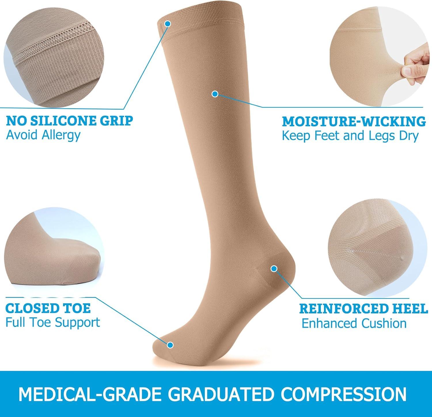 NEENCA Compression Socks, Medical Athletic Socks for Injury Recovery & Pain Relief, Sports Protection – 1 Pair(Skin)
