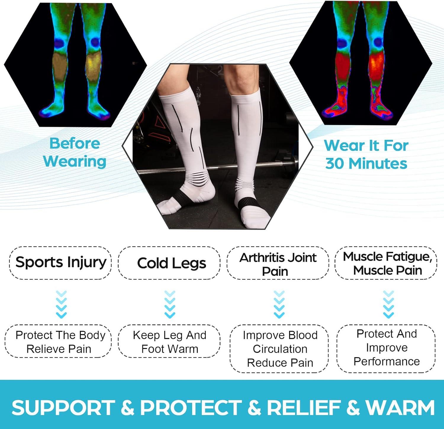 BETTER PERFORMANCE— Overcome the defects of similar products, medical compression socks with no allergies and itchiness. Ergonomic design: 360° perfectly fit your calf and foot curve, which will effectively disperses pressure, keeping your leg warm, lubricating your joints. Different from cheap products, the non-slip fabrics will avoid sliding and tumbling during exercise, It will stay up all day, so you can wear them all day long! BEST CHOICE for sports protection and pain recovery.