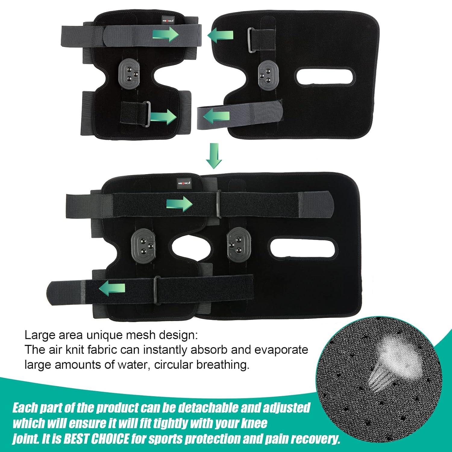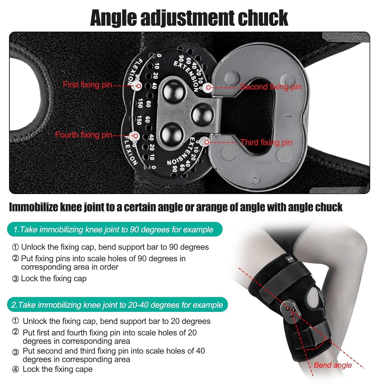 DOCTOR RECOMMENDED— The high-strength hinges with locking dials on both sides will reduce flexion and extension movements, providing stability and protection to weak and injured knees. The locking dials can adjusted between -10° to 150°(exclusive patent beyond similar products). You can control the range of knee motion in this range according to the recovery of your knee.