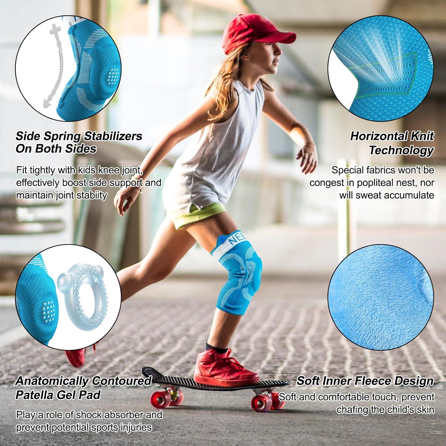 NEENCA Kids Knee Brace Sleeve, Youth Knee Compression Sleeve for Children - Boys & Girls. Child Knee Support with Patella Gel Pad & Side Stabilizers for Knee Pain, Sports, Outdoor - FSA/HSA Approved(Blue - Single)