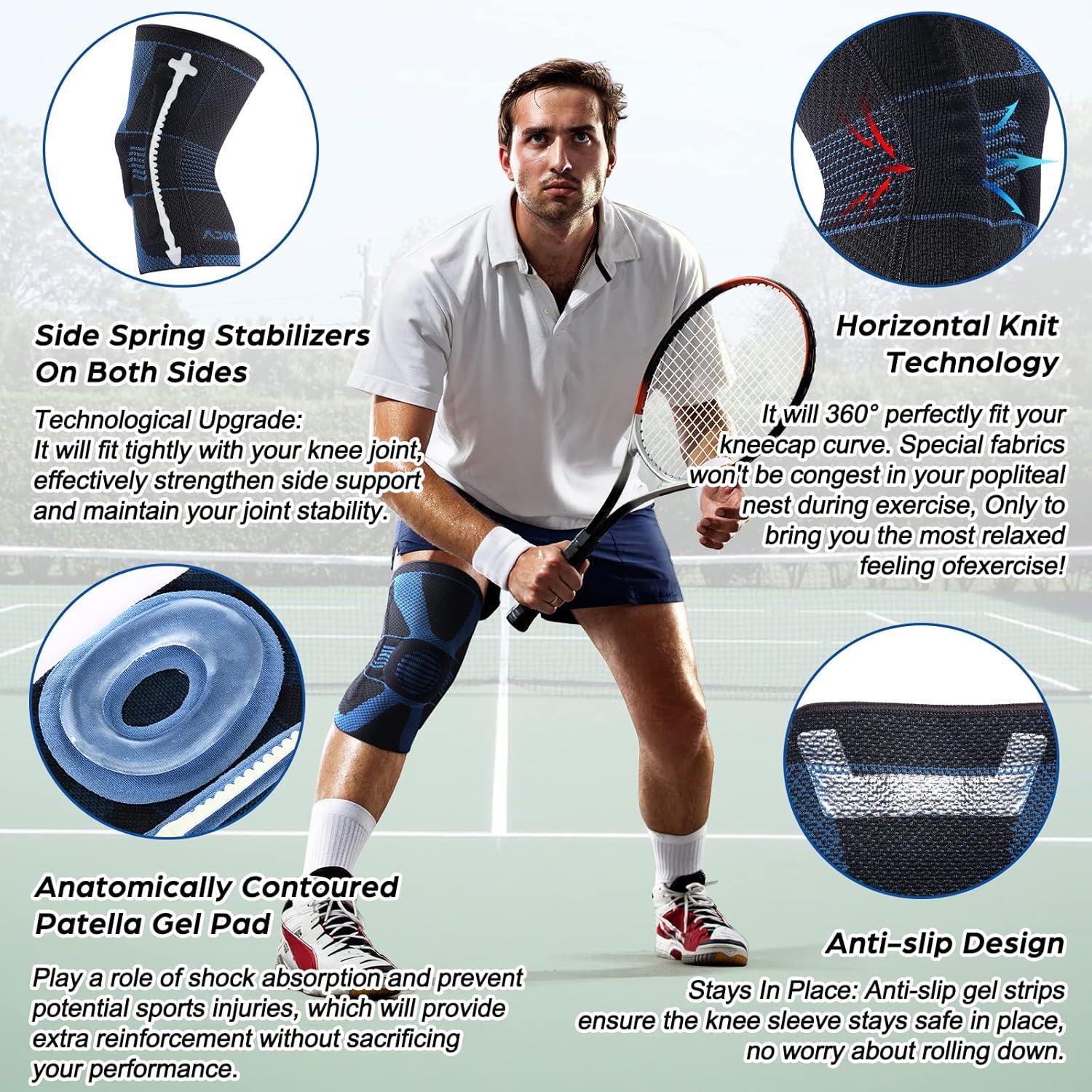 UPGRADED DESIGN— Adopt the Anti-Inflammatory Therapy, overcome the defects of similar products, medical knee sleeves with no allergies and itchiness. With high-elastic tight and breathable compression fabric to fit perfectly with your knee curve, 3D structure of woven, high-precision knitting cutting technology. Side spring stabilizers on both sides and patella gel pad won't fall off easily during using, Non-slip gel strips to avoid slide or roll during exercise, It will stay in place all day!