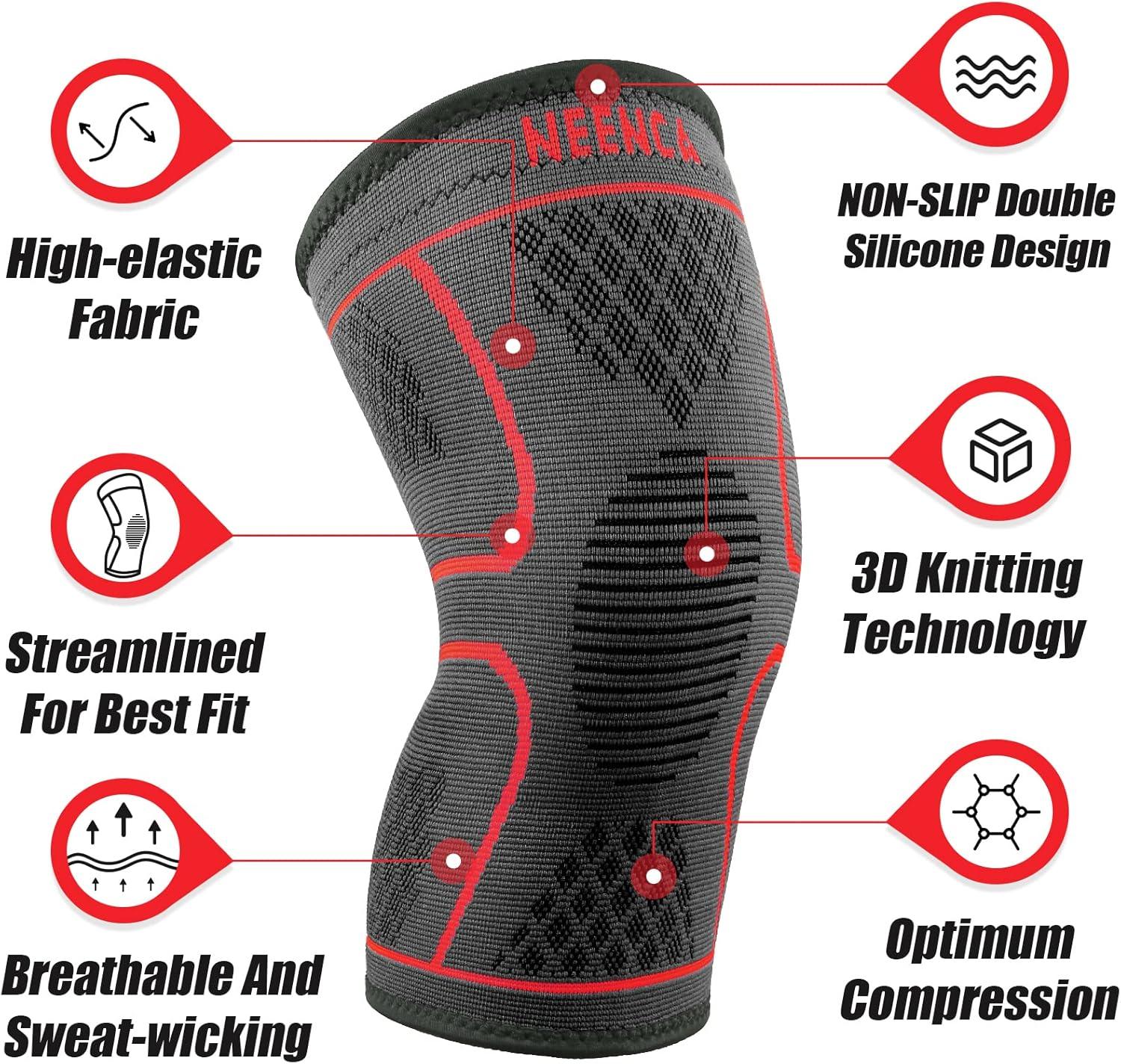 NEENCA KNEE SUPPORT TECHNOLOGY—With high-elastic and breathable compression fabric to 360° perfectly fit your knee curve, It will help improve poor circulation & increase oxygen to optimize the natural healing process, helping increase blood circulation, and reduce varicose veins, inflammation for leg or knee pain relief from acute or chronic joint injuries. It will strengthen side support and maintains joint stability, keeping your knee warm, BEST CHOICE for sports protection and pain recovery!