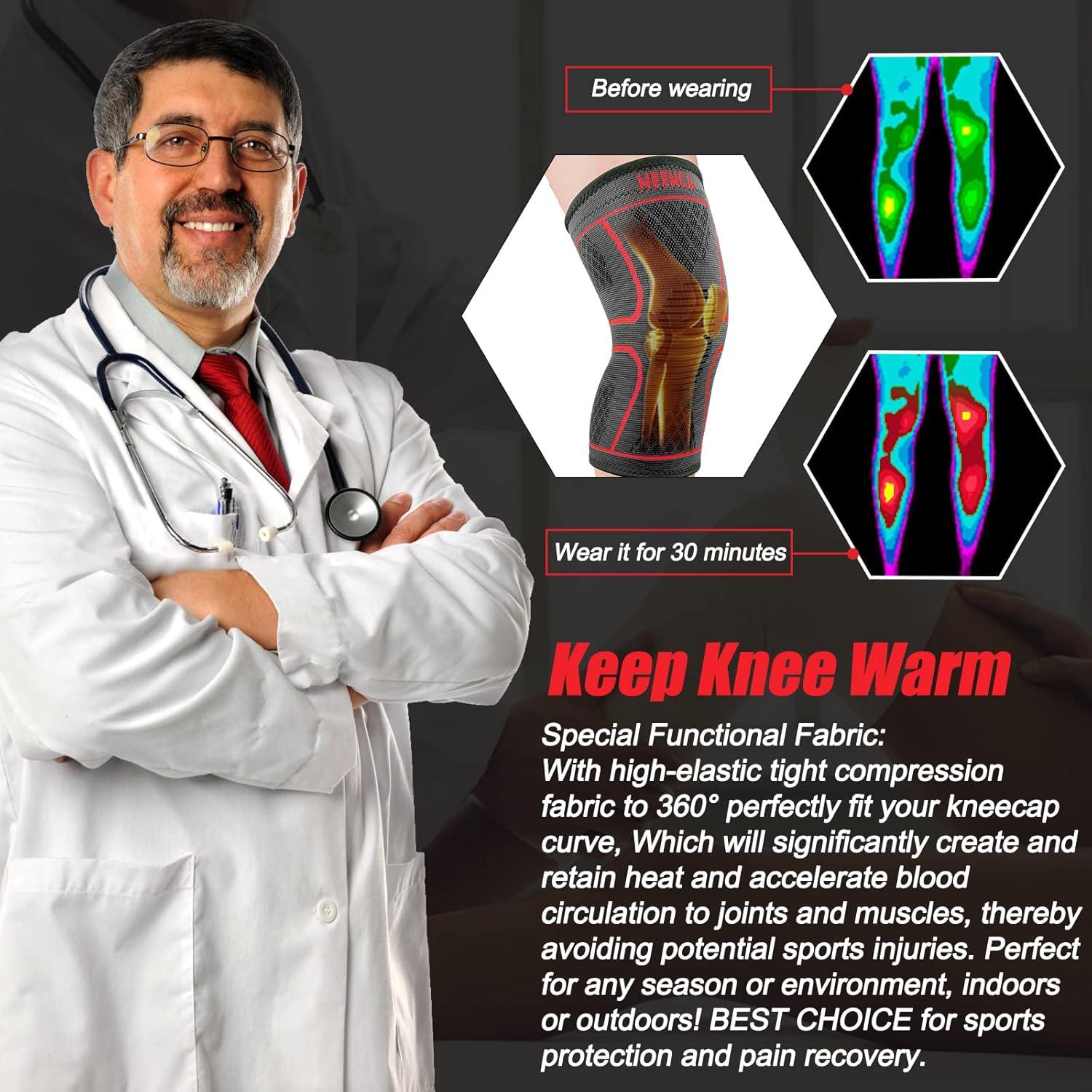 TARGETED RELIEF & SUPPORT— NEENCA got a well balance between compression and comfort. Adopt Anti-Inflammatory Therapy and improves circulation around knee area, which will effective reduce the pressure of knee joint and help the meniscus to recover. Wrap around Patella to enhance the stability of kneecap and relax tendons, prevent muscle strain. Relieve ACL, MCL, PCL pain, prevent ligament injury, meniscus tear, swelling, inflammation and so on. It is Perfect for Injuries Recovery or Workout.