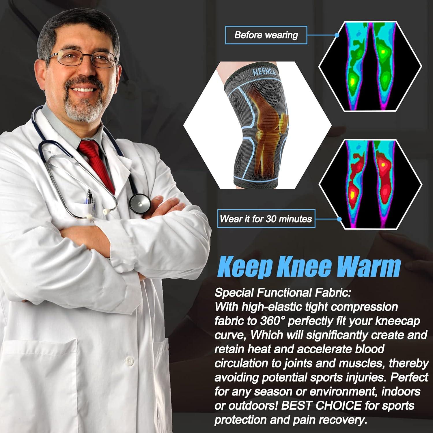 TARGETED RELIEF & SUPPORT— NEENCA got a well balance between compression and comfort. Adopt Anti-Inflammatory Therapy and improves circulation around knee area, which will effective reduce the pressure of knee joint and help the meniscus to recover. Wrap around Patella to enhance the stability of kneecap and relax tendons, prevent muscle strain. Relieve ACL, MCL, PCL pain, prevent ligament injury, meniscus tear, swelling, inflammation and so on. It is Perfect for Injuries Recovery or Workout.