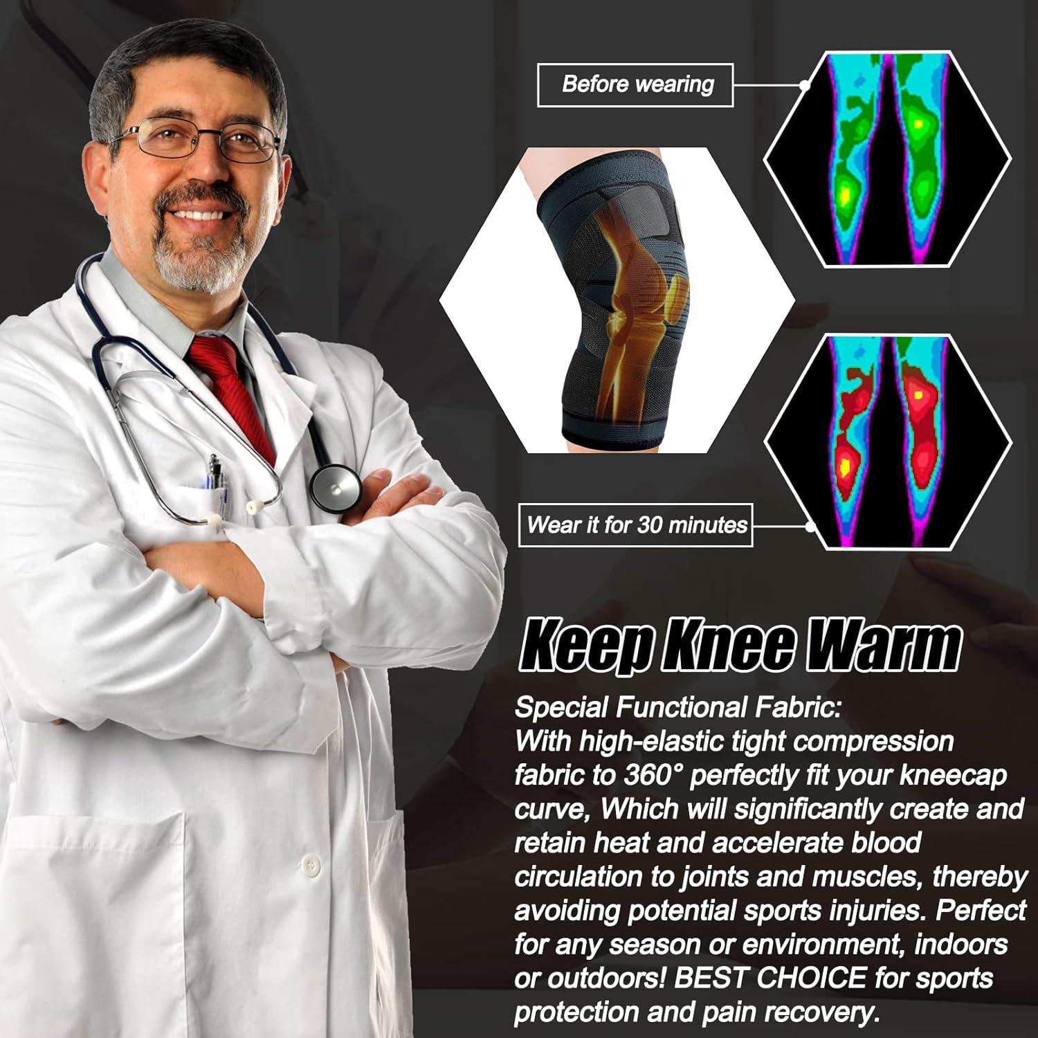 BETTER PERFORMANCE— Overcome the defects of similar products, Medical-grade strap knee braces with no allergies and itchiness. Non-slip silicone strips and high-elastic compression fabric to avoid sliding and rolling during exercise, It will stay position all day. Innovative functional fabrics has the effect of keep your knee warm and reduce stiffness, reducing inflammation and swelling, increase oxygen flow. So it will prevent potential sports injuries without sacrificing your performance!