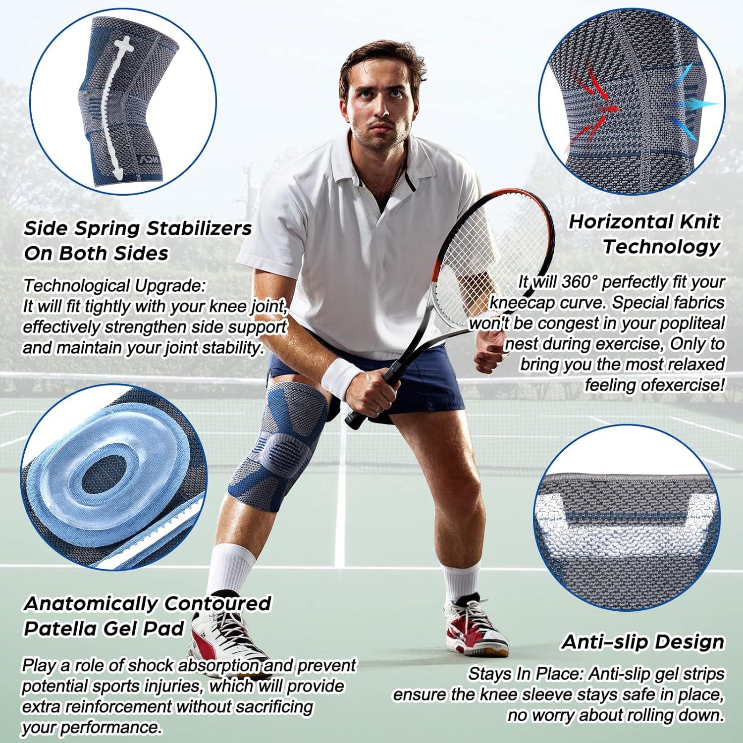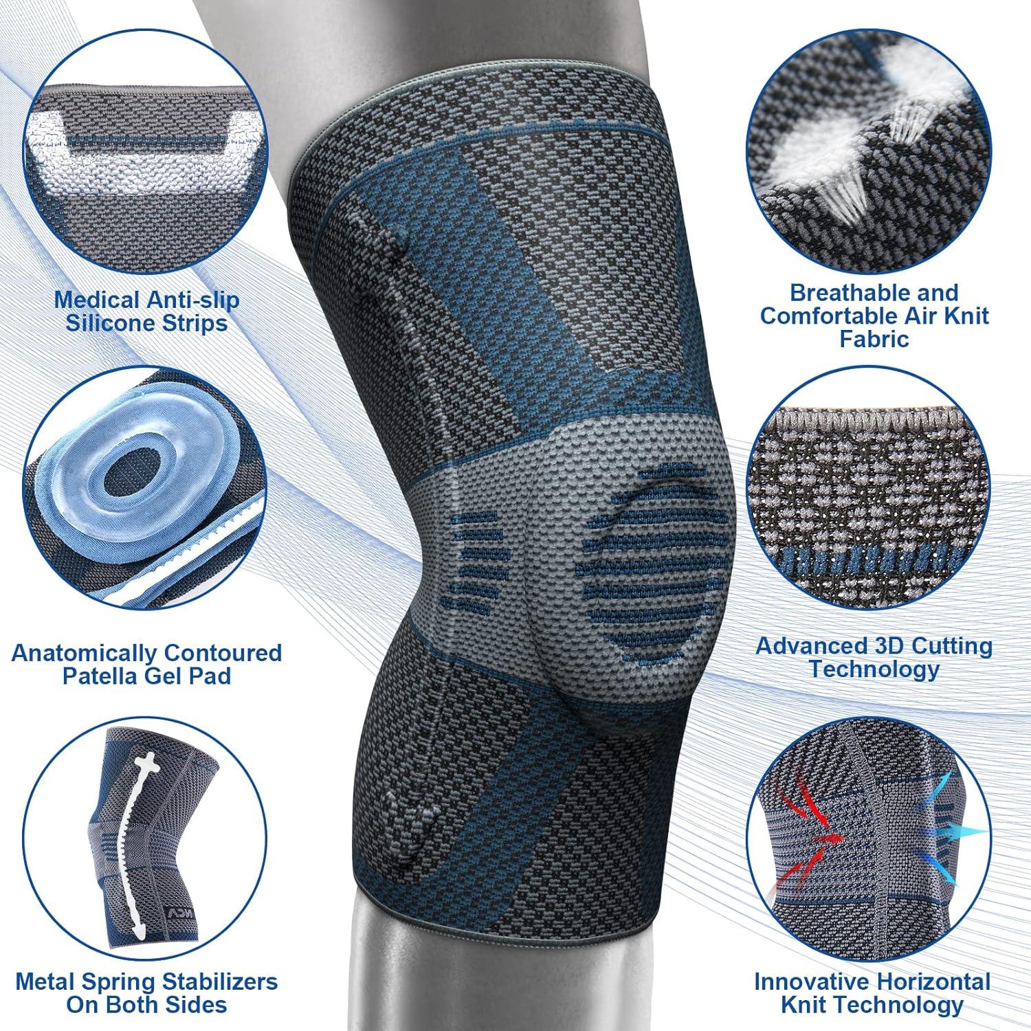 UPGRADED DESIGN— Adopt the Anti-Inflammatory Therapy, overcome the defects of similar products, medical knee sleeves with no allergies and itchiness. With high-elastic tight and breathable compression fabric to fit perfectly with your knee curve, 3D structure of woven, high-precision knitting cutting technology. Side spring stabilizers on both sides and patella gel pad won't fall off easily during using, Non-slip gel strips to avoid slide or roll during exercise, It will stay in place all day!