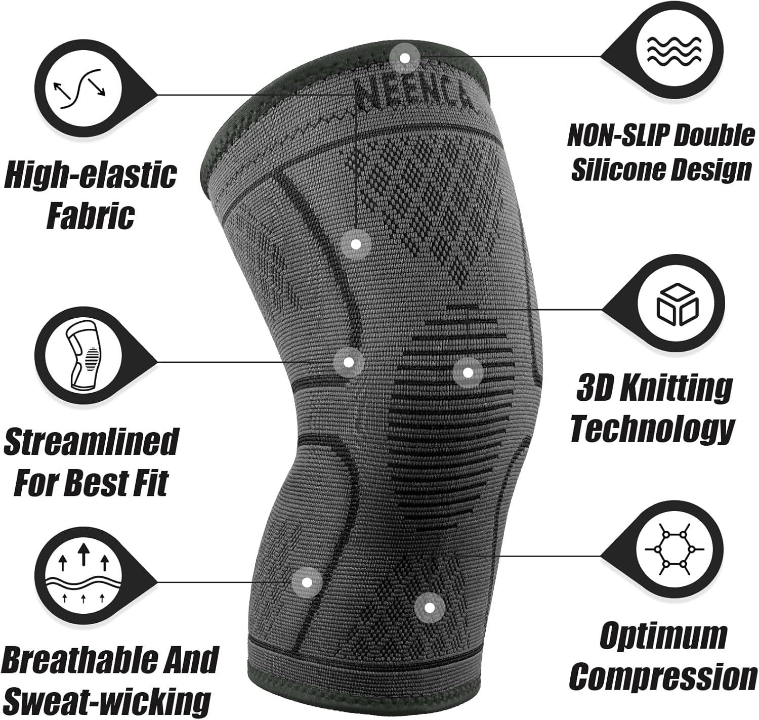 NEENCA KNEE SUPPORT TECHNOLOGY—With high-elastic and breathable compression fabric to 360° perfectly fit your knee curve, It will help improve poor circulation & increase oxygen to optimize the natural healing process, helping increase blood circulation, and reduce varicose veins, inflammation for leg or knee pain relief from acute or chronic joint injuries. It will strengthen side support and maintains joint stability, keeping your knee warm, BEST CHOICE for sports protection and pain recovery!
