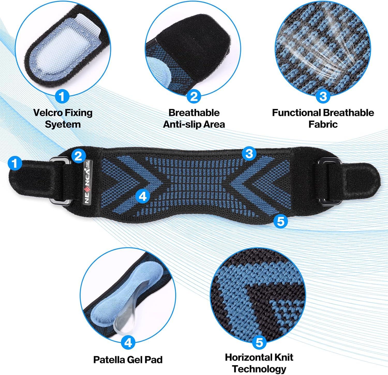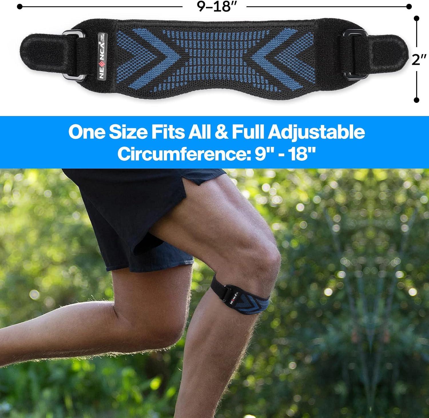NEENCA's Innovative Horizontal Knit Technology, Medical Grade Knee Strap for Patella Tendon Support. ONE SIZE FITS ALL— fits for 9-18 inches of knee circumferences.