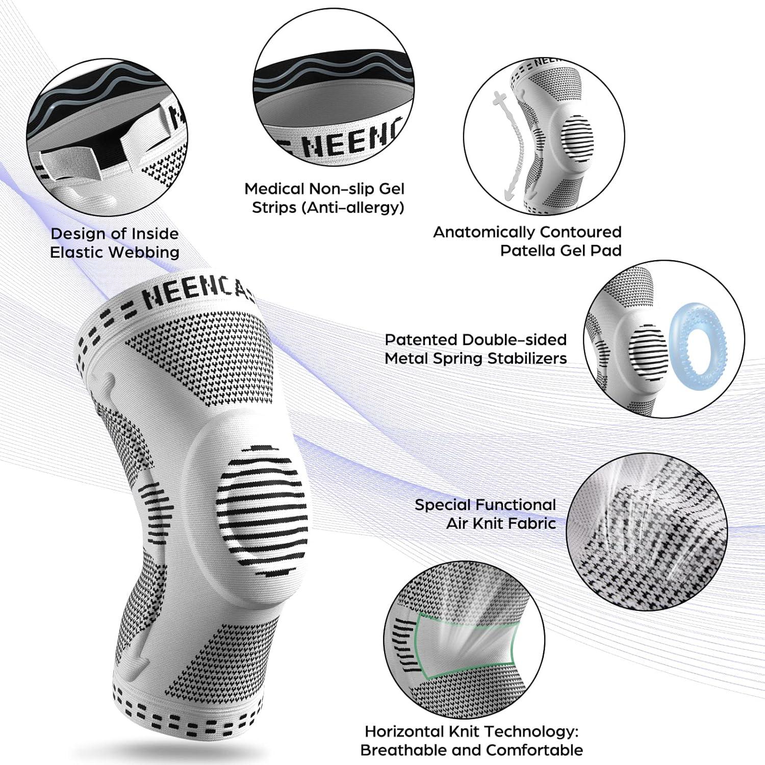 TARGETED RELIEF & SUPPORT— NEENCA got a well balance between compression and comfort. Adopt Anti-Inflammatory Therapy and improves circulation around knee area, which will effective reduce the pressure of knee joint and help the meniscus to recover. Wrap around Patella to enhance the stability of kneecap and relax tendons, prevent muscle strain. Relieve ACL, MCL, PCL pain, prevent ligament injury, meniscus tear, swelling, inflammation and so on. It is Perfect for Injuries Recovery or Workout.