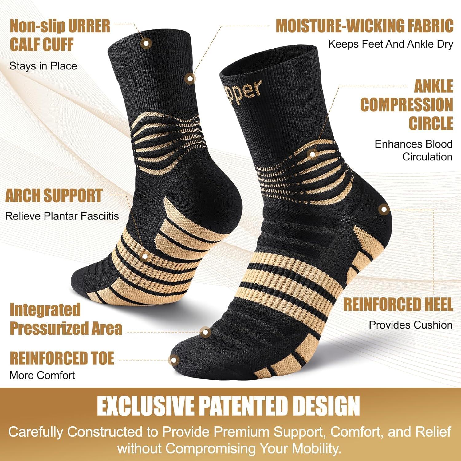 Professional Patented Copper Compression Socks For Better Blood Circulation, Pain Relief and Injuries Recovery. Medical Sleeping Low Cut Socks For Plantar Fasciitis Pain Relief. ELITE Compression Copper Socks for Women & Men, Running, Nurses, Flight, Travel, Day & Night Comfort Wear. 20-30 mmHg