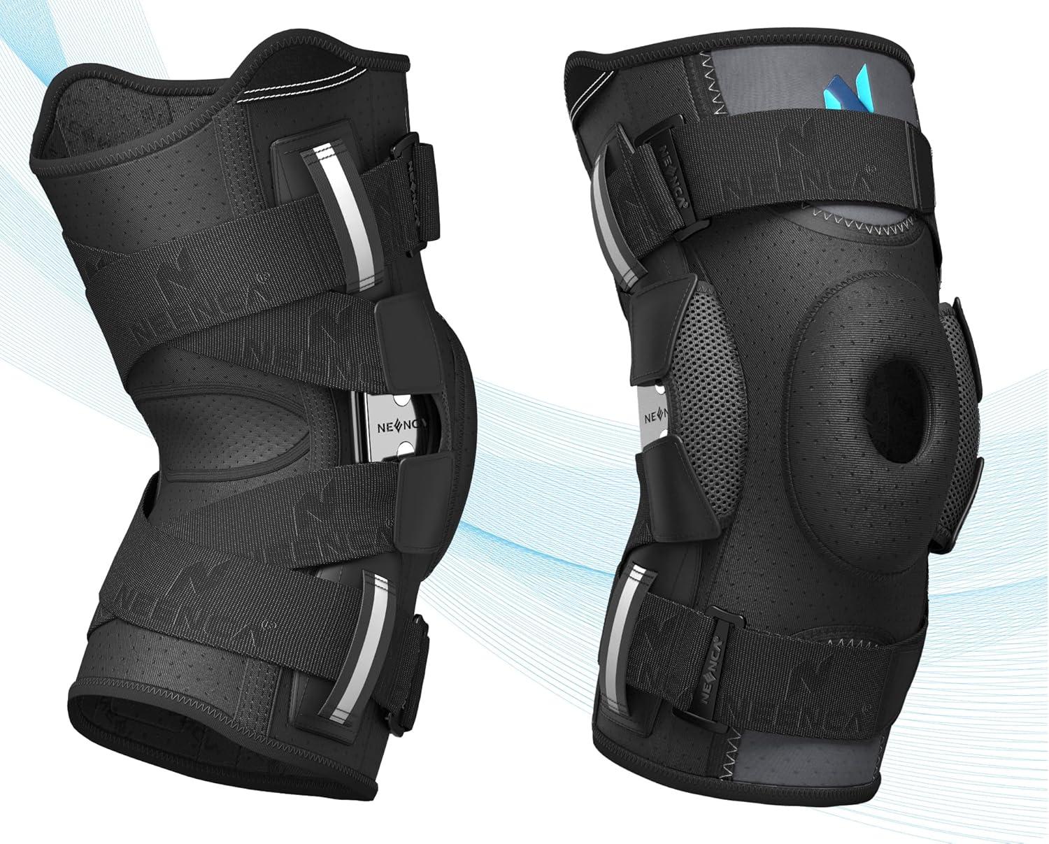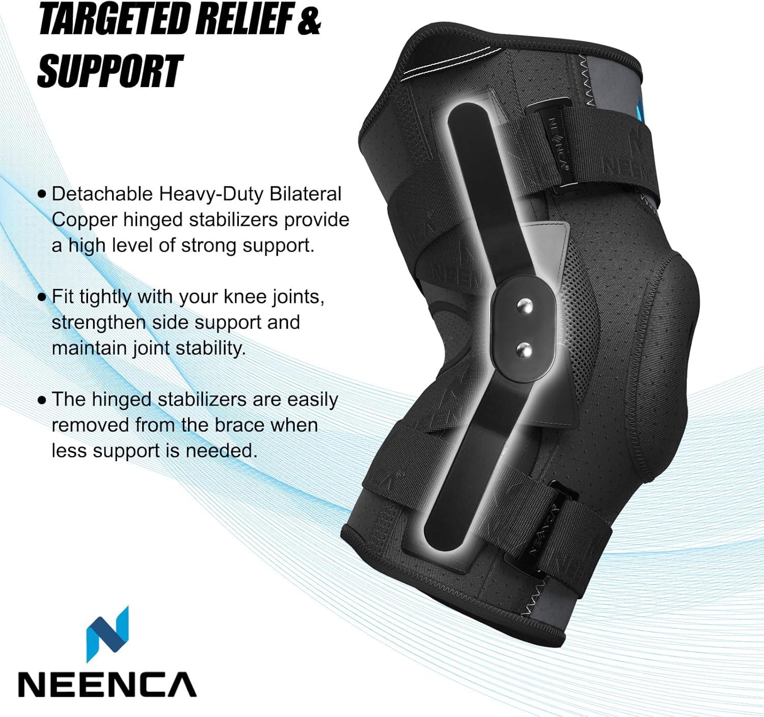 NEENCA Professional Knee Brace for Knee Pain, Hinged Knee Support with Patented X-Straps Fiting System, Strong Stability for Joint Pain Relief, Arthritis, Meniscus Tear, ACL, PCL, MCL, Sports, Workout(Black-Single)
