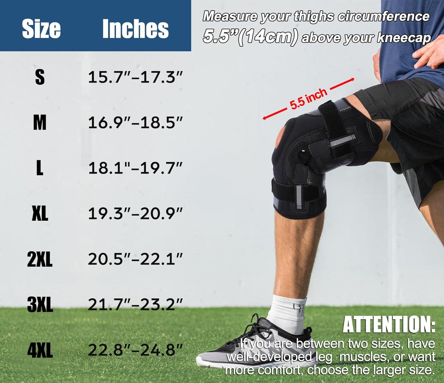 MULTIFUNCTION— Specifically designed for people with knee pain, joint injuries and the elderly, It's easy to install and can be done completely by yourself. Ideal for high performance training, sports & exercise & workout. Widely used in many sports such as weightlifting, basketball, running, gym, tennis, hiking, cycling, skiing and more! Fits both left and right legs, universal for men and women. Please refer to size chart, If you are between two sizes, choose the larger one.