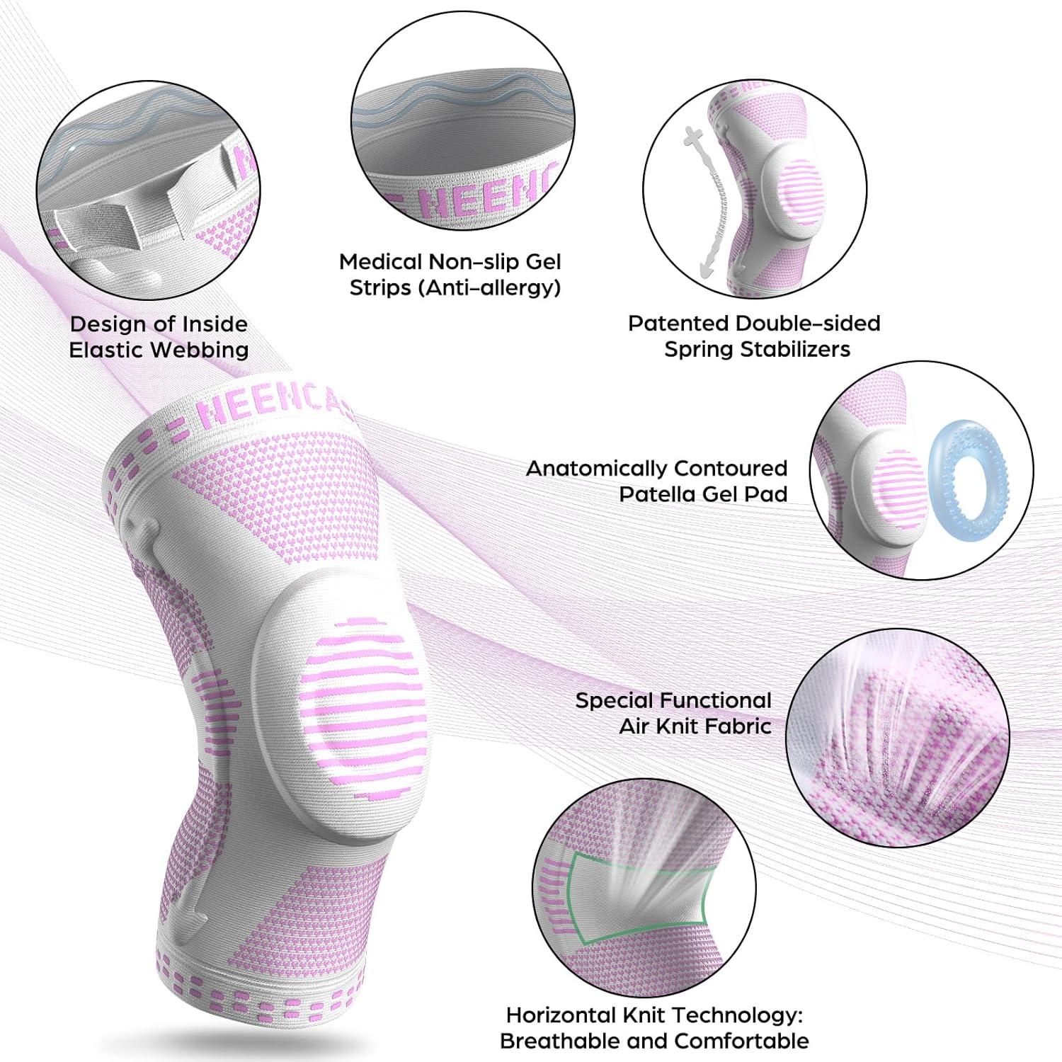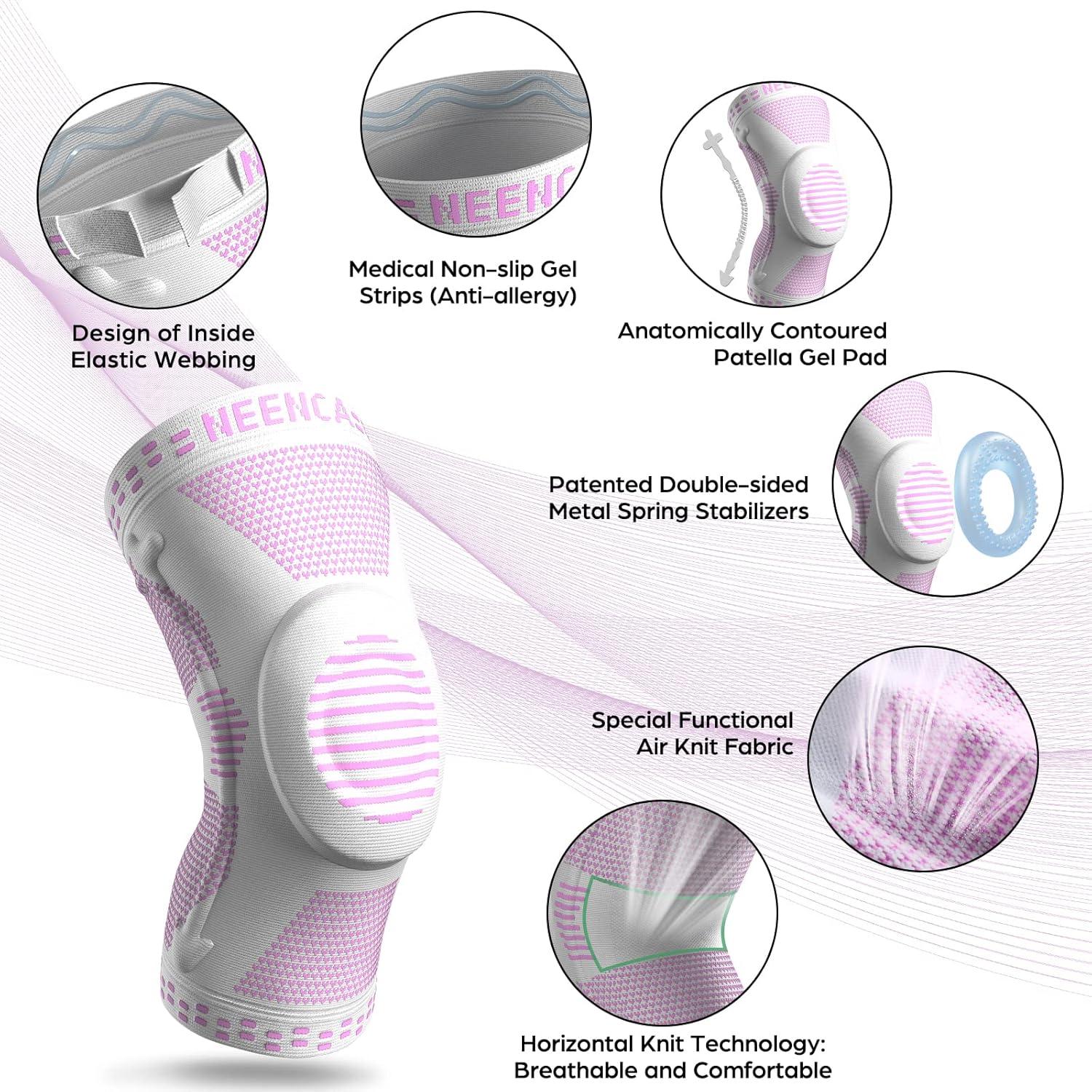 NEENCA Professional Knee Brace for Pain Relief, Medical Knee Support with Patella Pad & Side Stabilizers, Compression Knee Sleeve for Meniscus Tear, ACL, Joint Pain, Runner, Workout – FSA/HSA Eligible(Pink Gray)