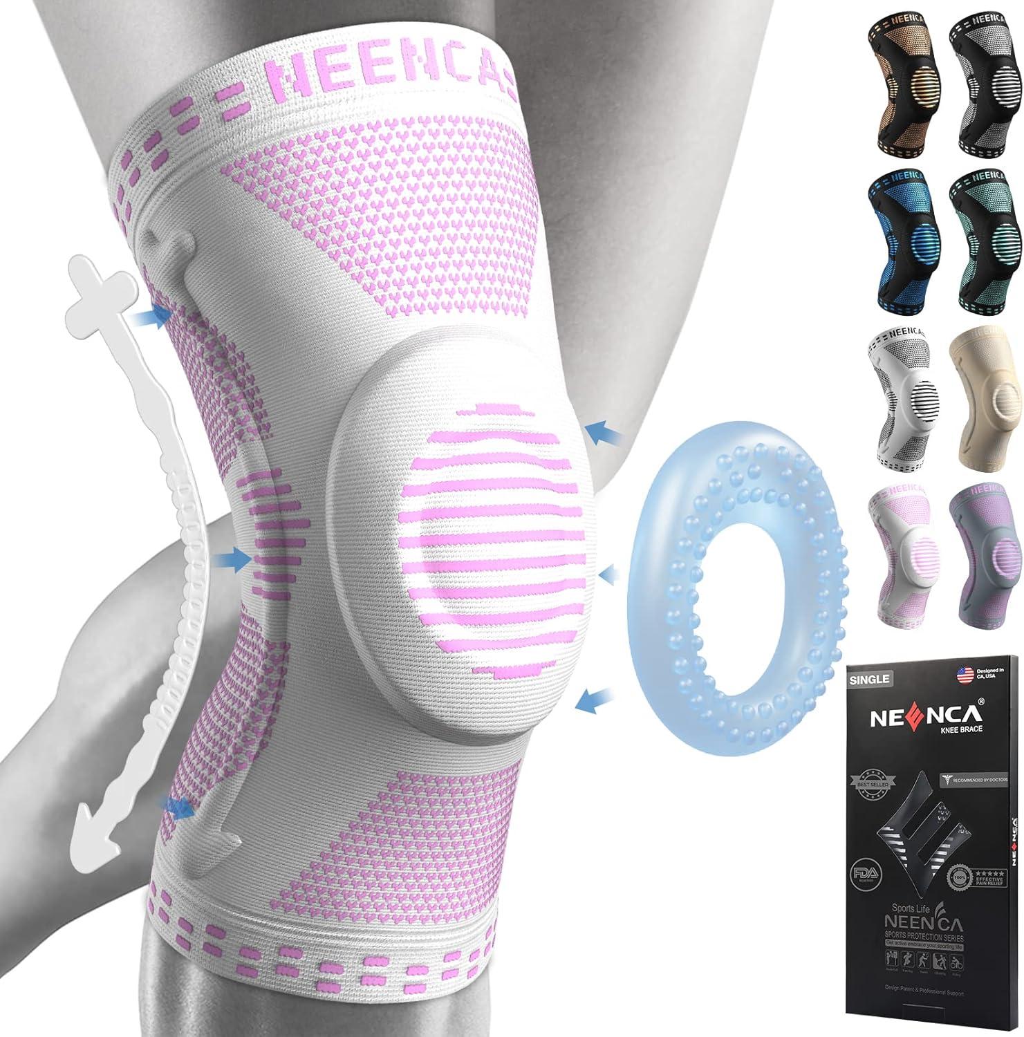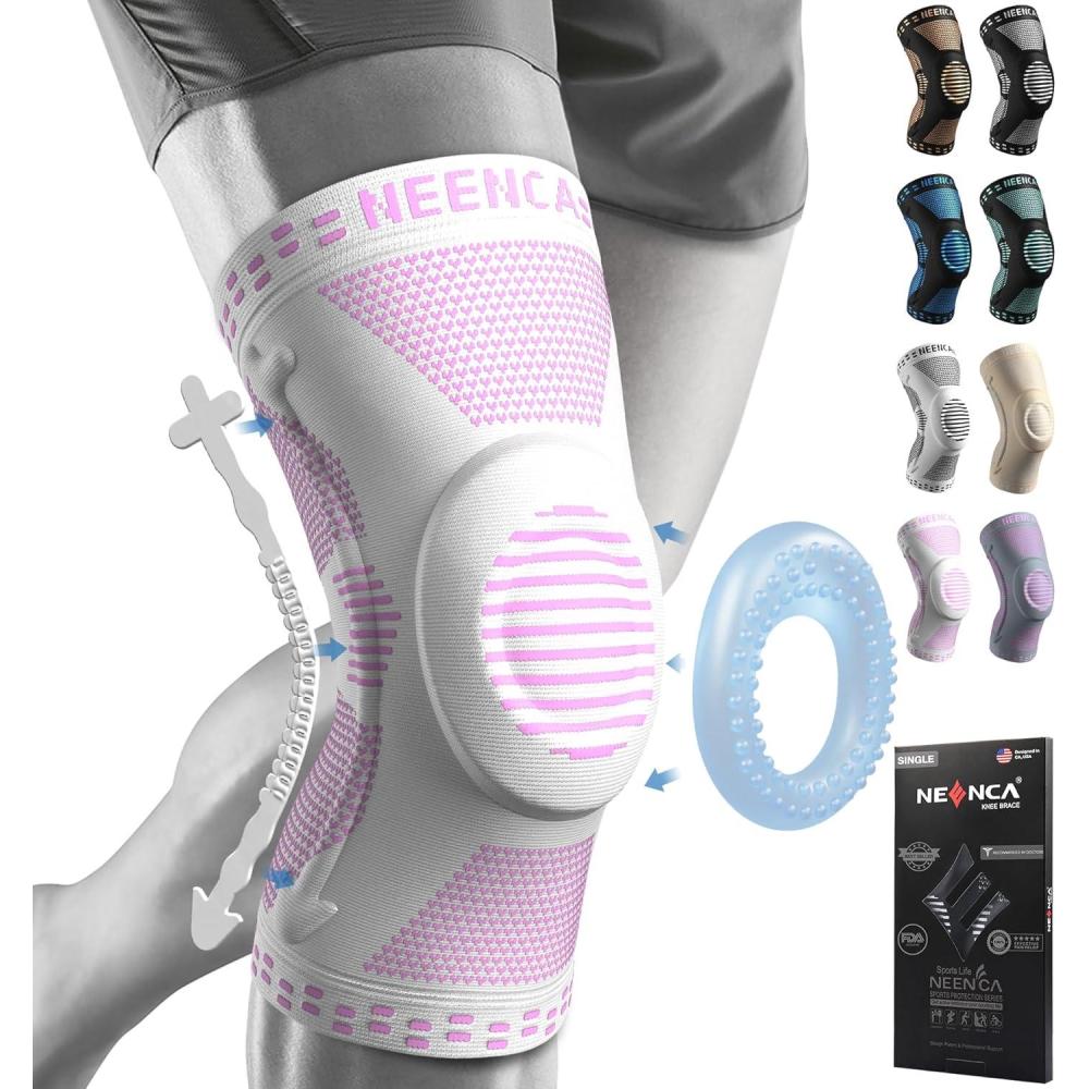 NEENCA Professional Knee Brace for Pain Relief, Medical Knee Support with Patella Pad & Side Stabilizers, Compression Knee Sleeve for Meniscus Tear, ACL, Joint Pain, Runner, Workout – FSA/HSA Eligible(Pink White)