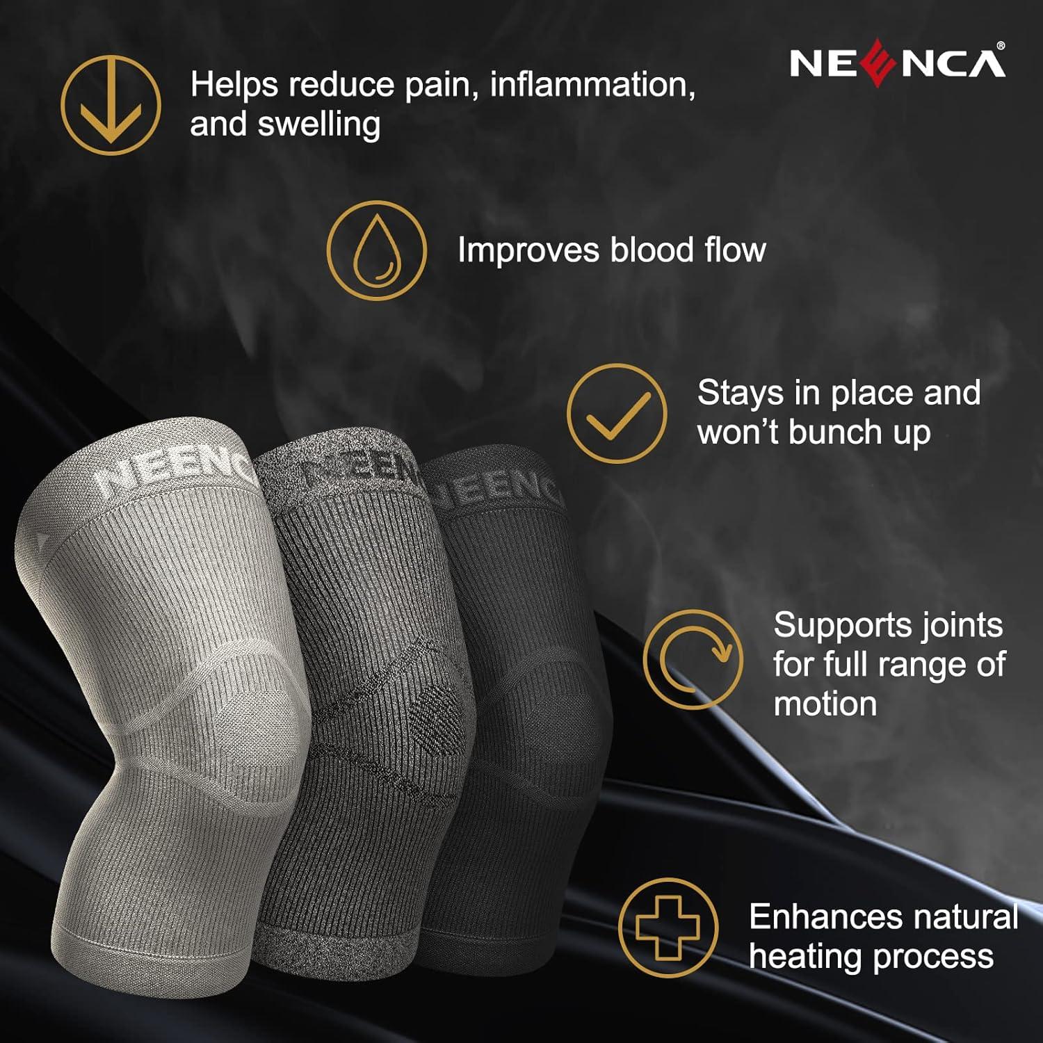 EXCLUSIVE PATENT— NEENCA Graphene Ions Infused Technology: 60% Graphene Ions Infused Fiber + 21% Blend Lycra Nylon +16% Polyester. These Graphene Ions are stimulated by body heat to help improve poor circulation & increase oxygen to optimize the natural healing process, helping increase blood circulation, and reduce inflammation for knee pain relief from acute or chronic joint injuries.